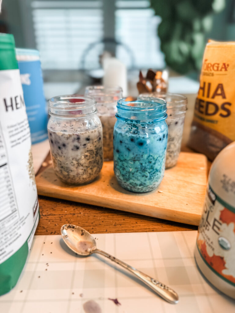 - Mix everything together in a mason jar, store overnight in your fridge and enjoy the next morning!